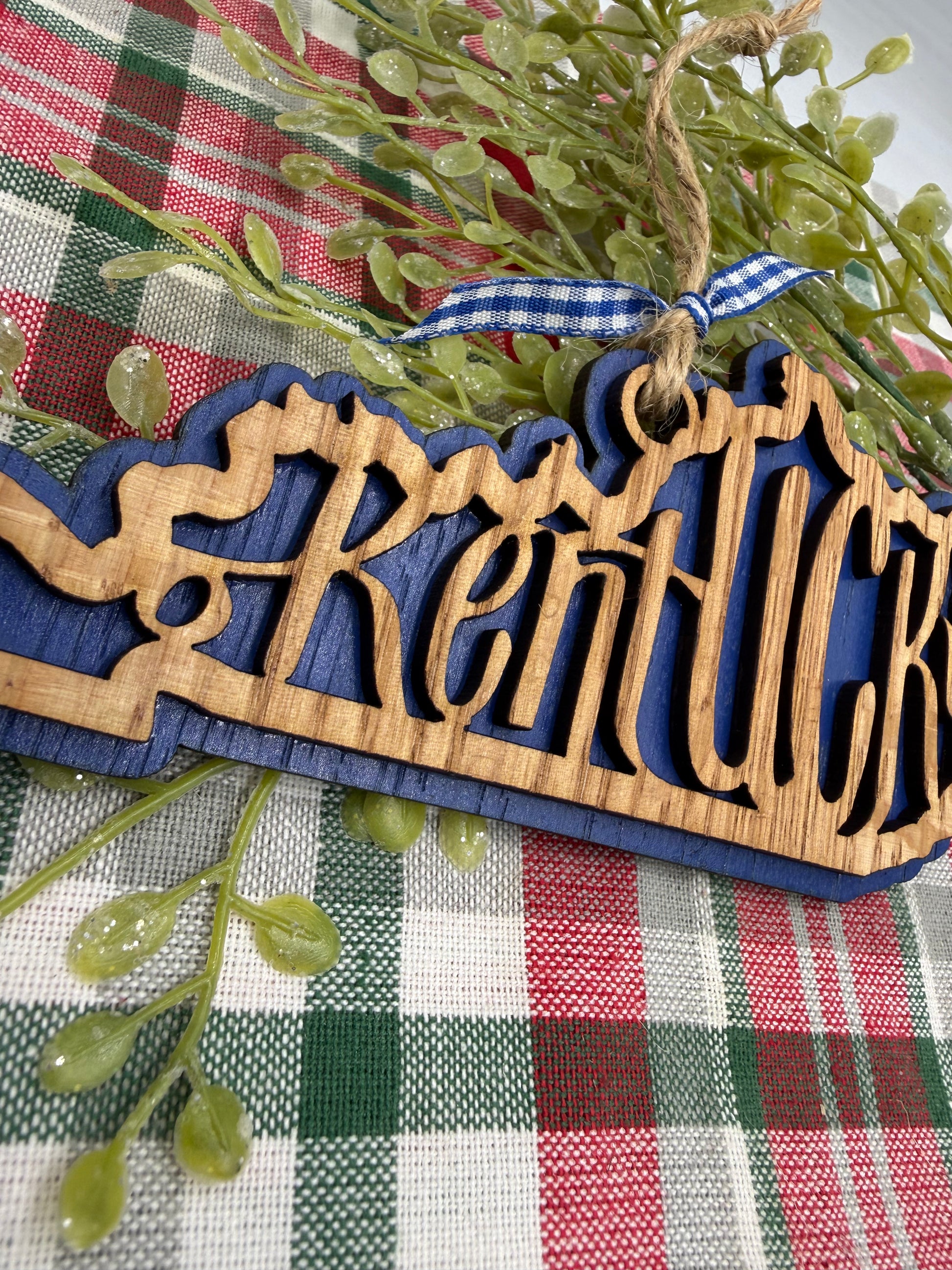 Celebrate the charm of Kentucky this holiday season with our beautifully crafted two-layered wood Christmas ornament!