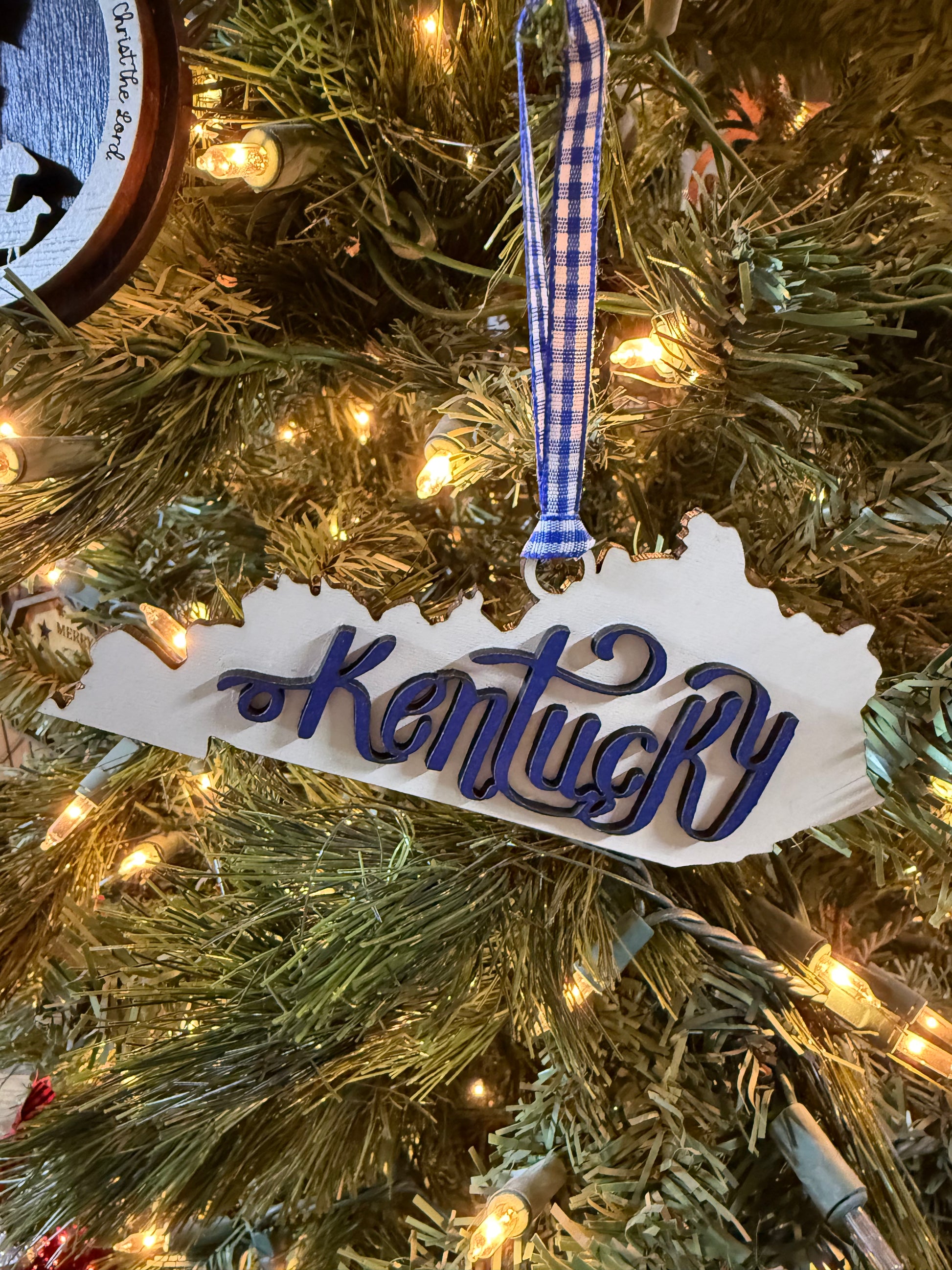 Add a touch of Kentucky charm to your holiday decor this year. Order your two-layered wood Christmas ornament today!