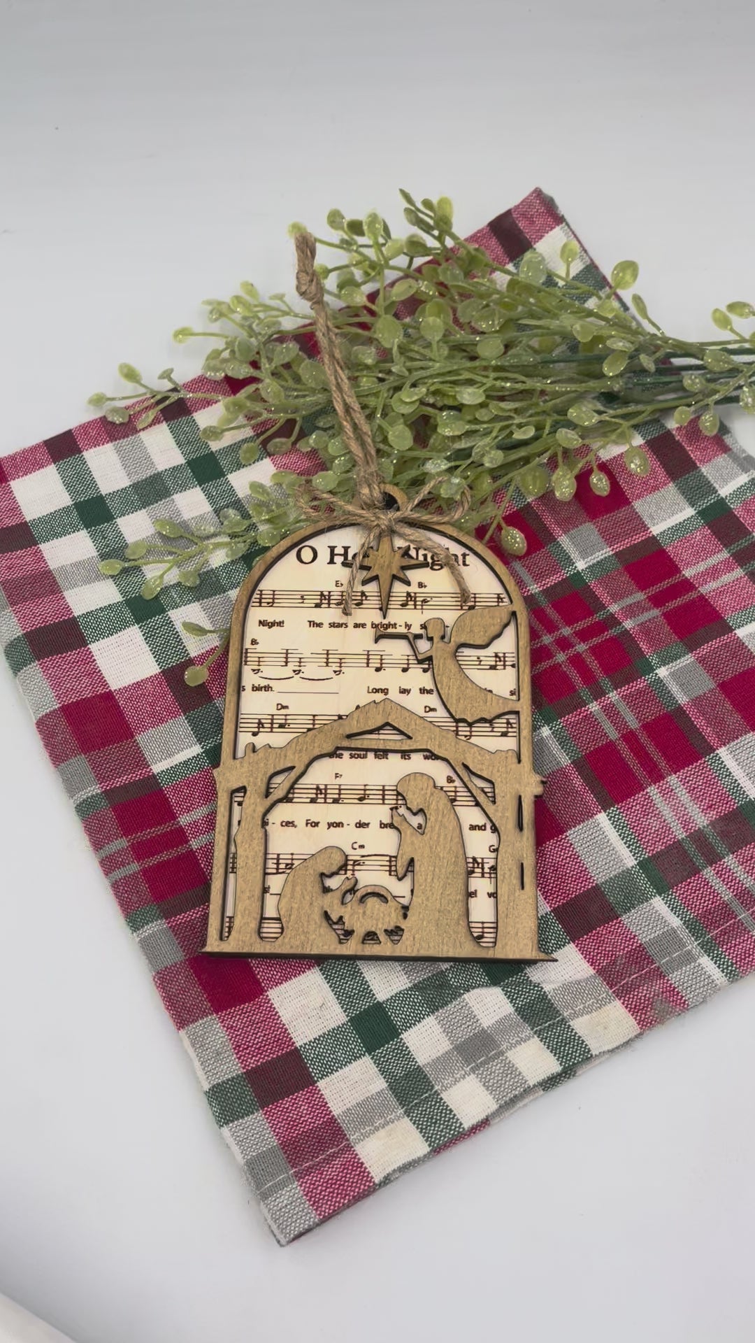 Two-Layered Wood Laser Engraved Nativity Scene O Holy Night Sheet Music Christmas Ornament