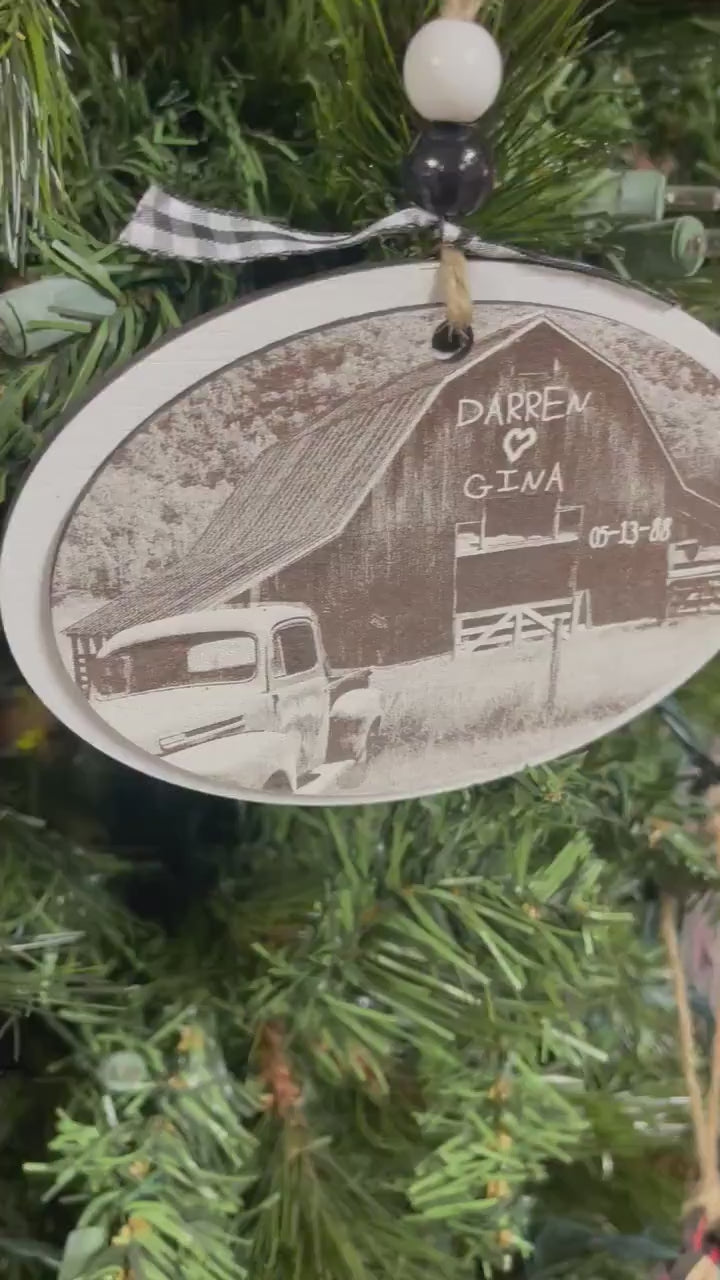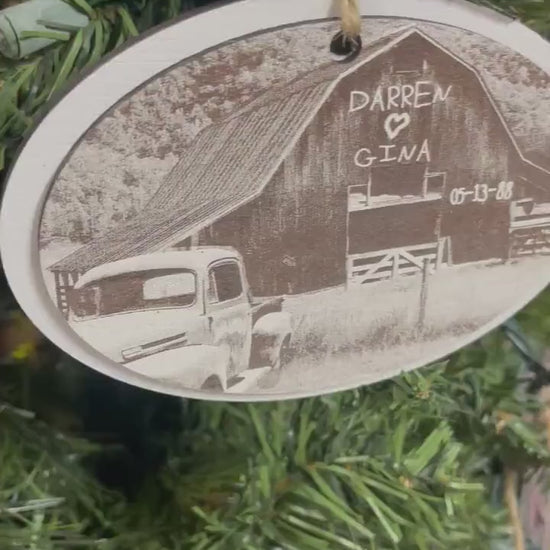 Personalized Barn & Truck Laser Engraved Christmas Ornament Unique Wedding Anniversary Gift