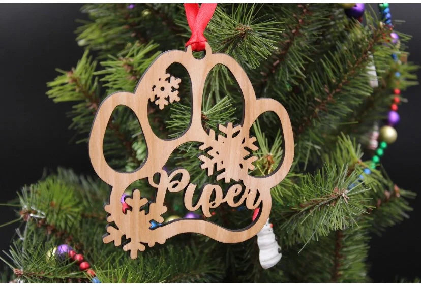 Wood Pet Paw Personalized Name Christmas Ornament for Fur Baby