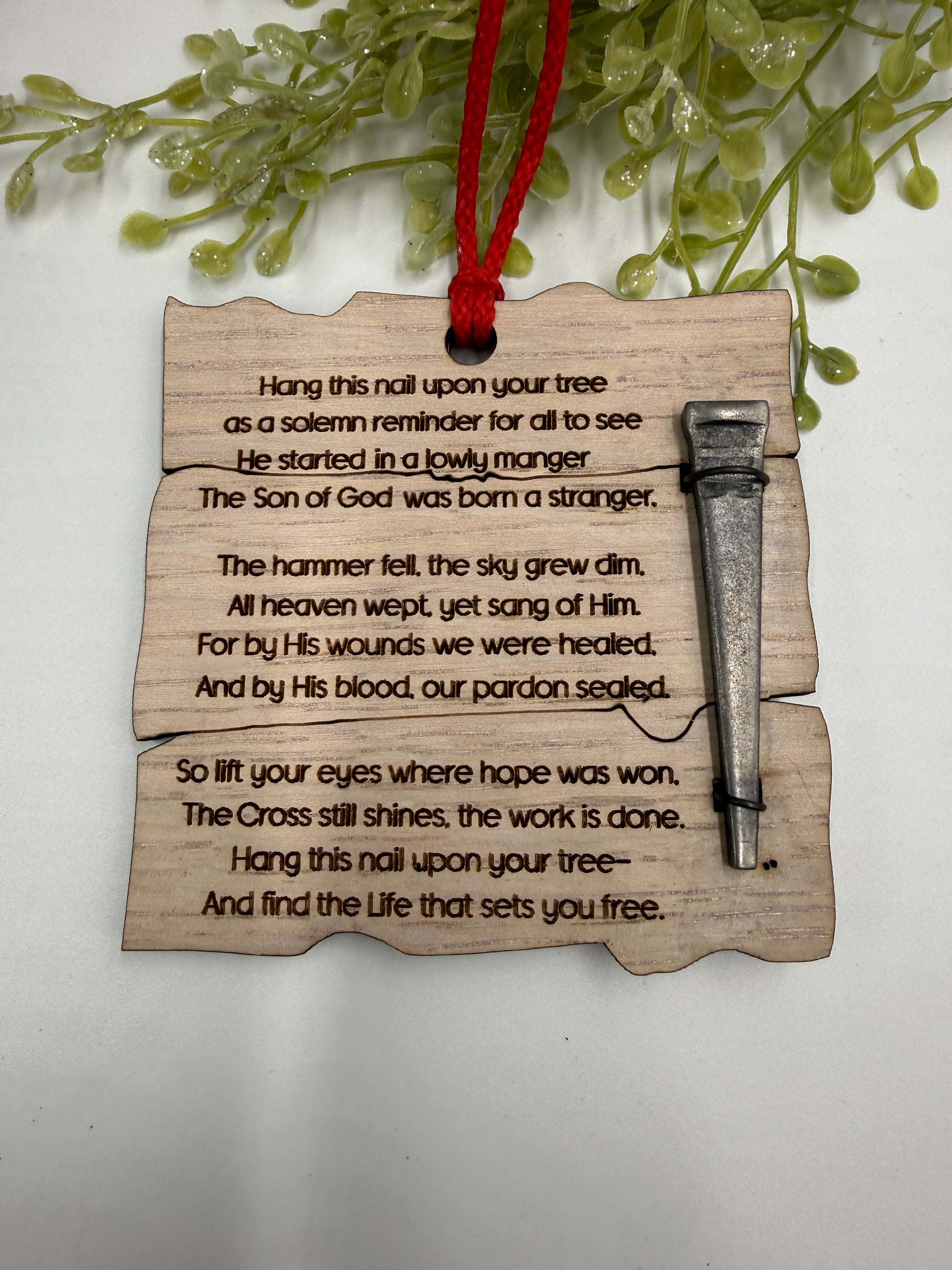 Wooden Jesus Nail Christian Christmas Ornament – Laser Cut Religious Holiday Faith Based Decoration